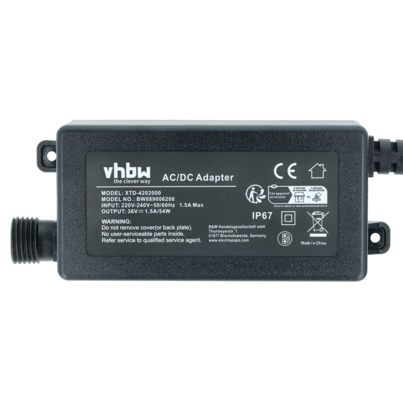 Töltő AL-KO robotfűnyírókhoz, feszültség 36 V. A töltő túltöltés elleni védelemmel, túláramvédelemmel és hőmérsékletvédelemmel rendelkezik, valamint CE és RoHS tanúsítvánnyal rendelkezik.