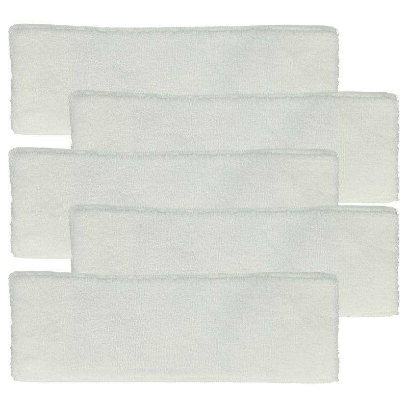 Öt darab pamut törlőkendőből álló készlet Kärcher gőztisztítókhoz. Méretei: 18,5 cm x 12 cm x 2,5 cm.