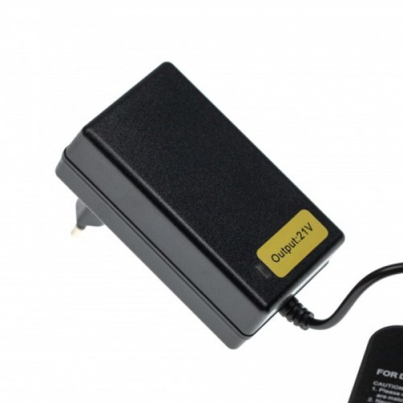 Töltő DeWalt Li-Ion akkumulátorokhoz 18 V-tól. A töltő túltöltés-, túláram- és hőmérséklet-védelemmel, valamint CE és RoHS tanúsítvánnyal rendelkezik.