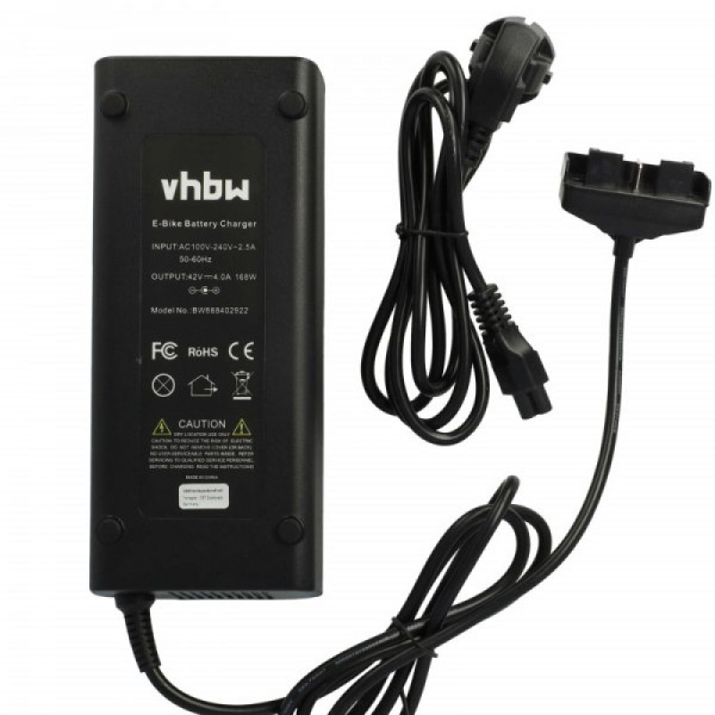 Minőségi elektromos kerékpártöltő a német VHBW gyártótól, túltöltés védelemmel, túláramvédelemmel, hőmérsékletvédelemmel, valamint CE és RoHS tanúsítvánnyal. A töltő LED kijelzővel van felszerelve, amely mutatja a töltés állapotát.