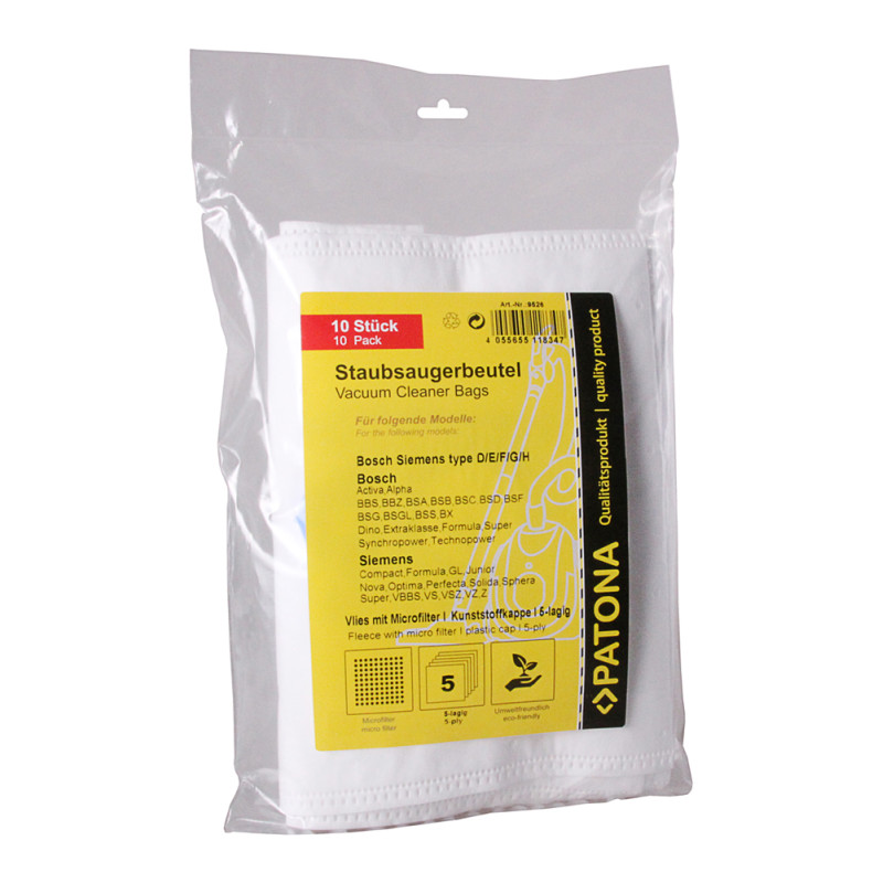Táska Bosch D / E / F / G típusú porszívóhoz, 10 db