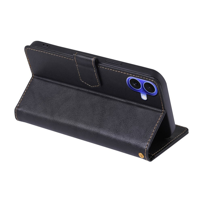 Egyedülálló, iPhone 16 Plus készülékhez alkalmas, kiváló minőségű műbőrből készült flip tok, varrott szélekkel és mágneses zárással.